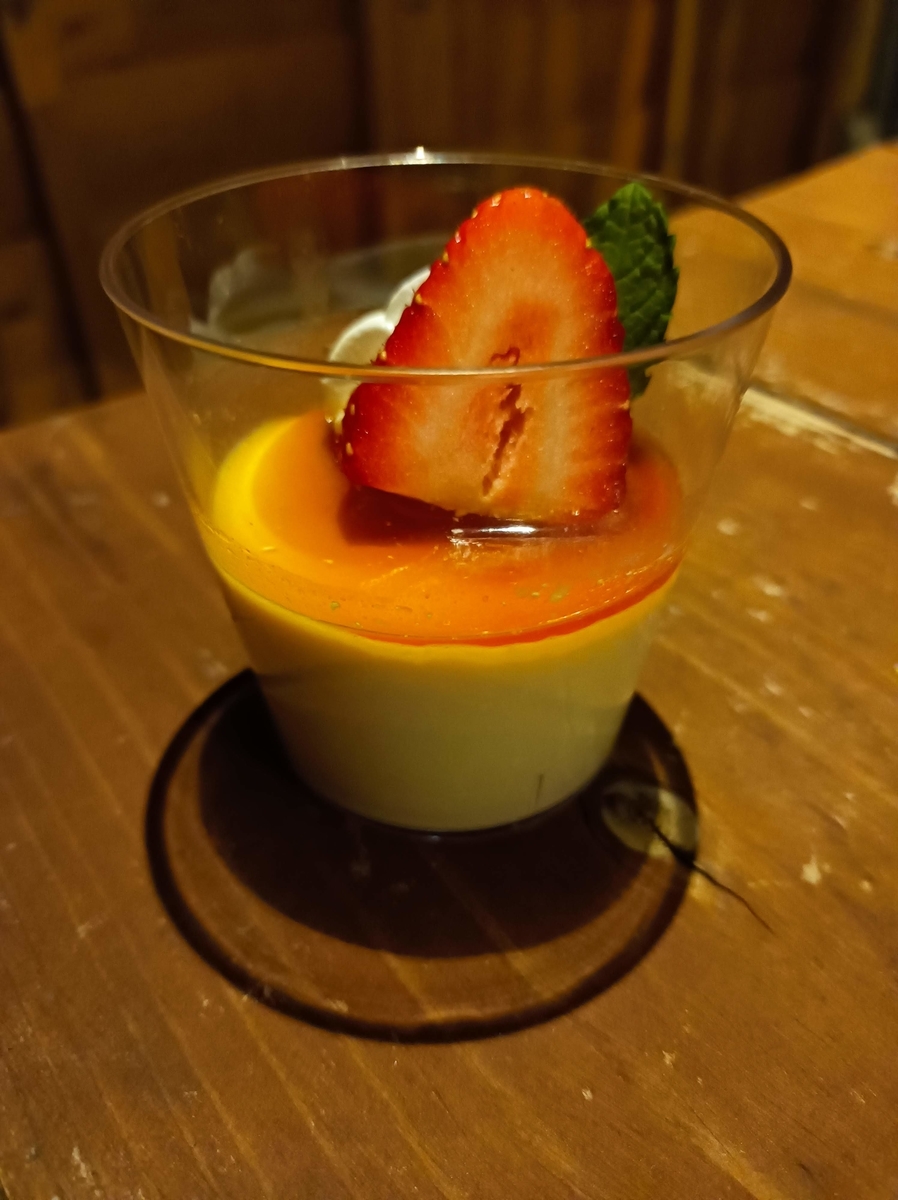 食後のデザートはプリンとイチゴですね。ここまででかなりお腹が膨れているのですが、甘いものは別腹です( ´∀` )。しっかりいただきました。