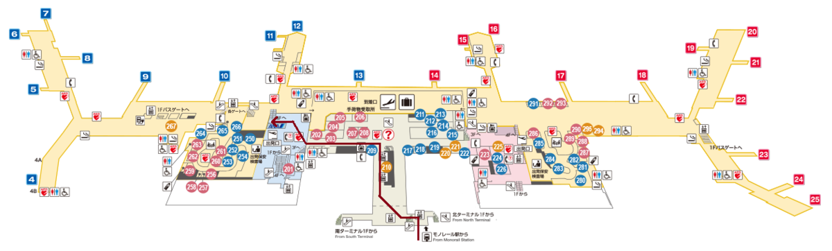 第一ターミナルってコの字型をしていて、手荷物検査場の正面に近い搭乗口には伊丹便とか新千歳便とか那覇便とかなんですよね。