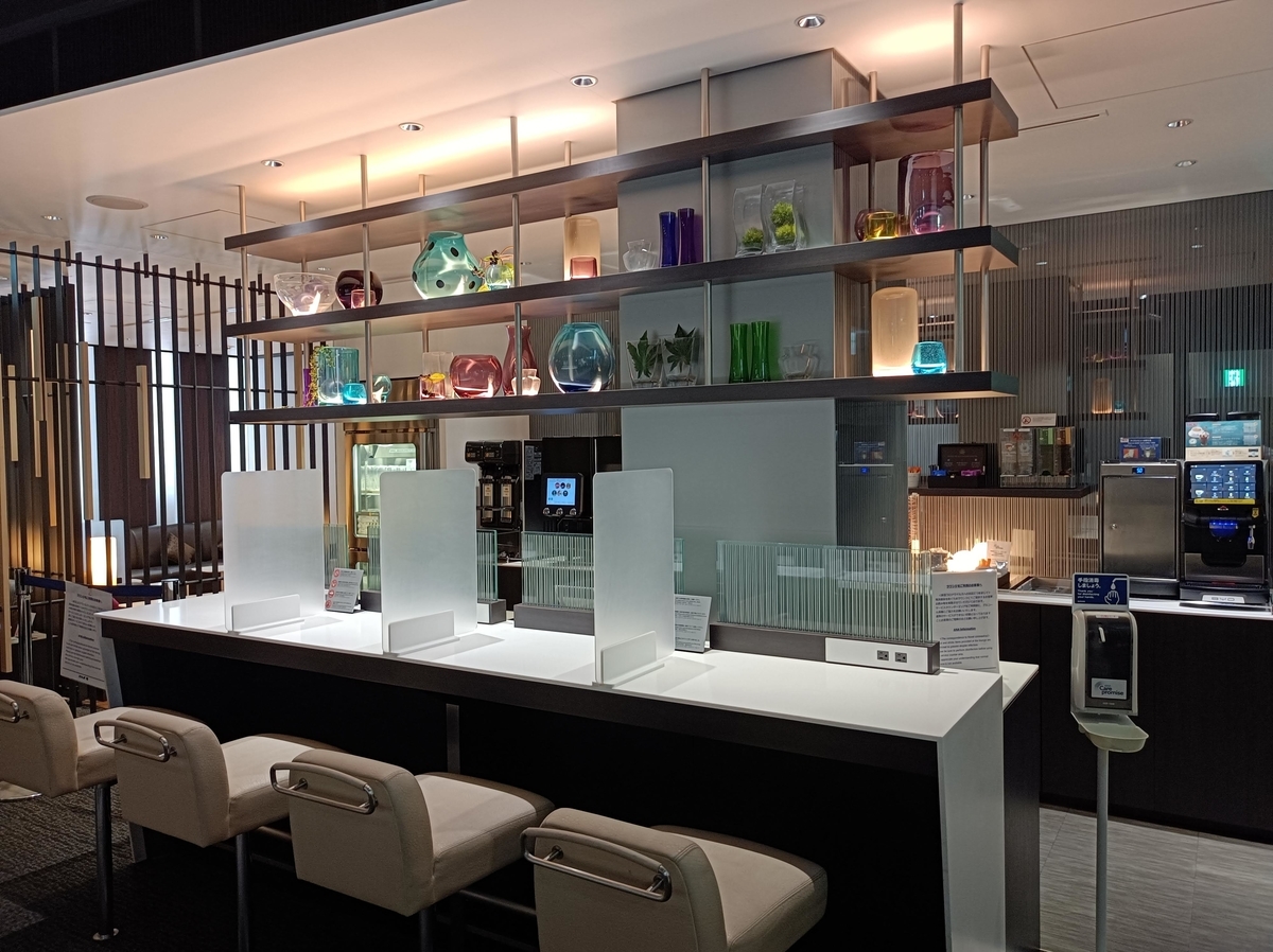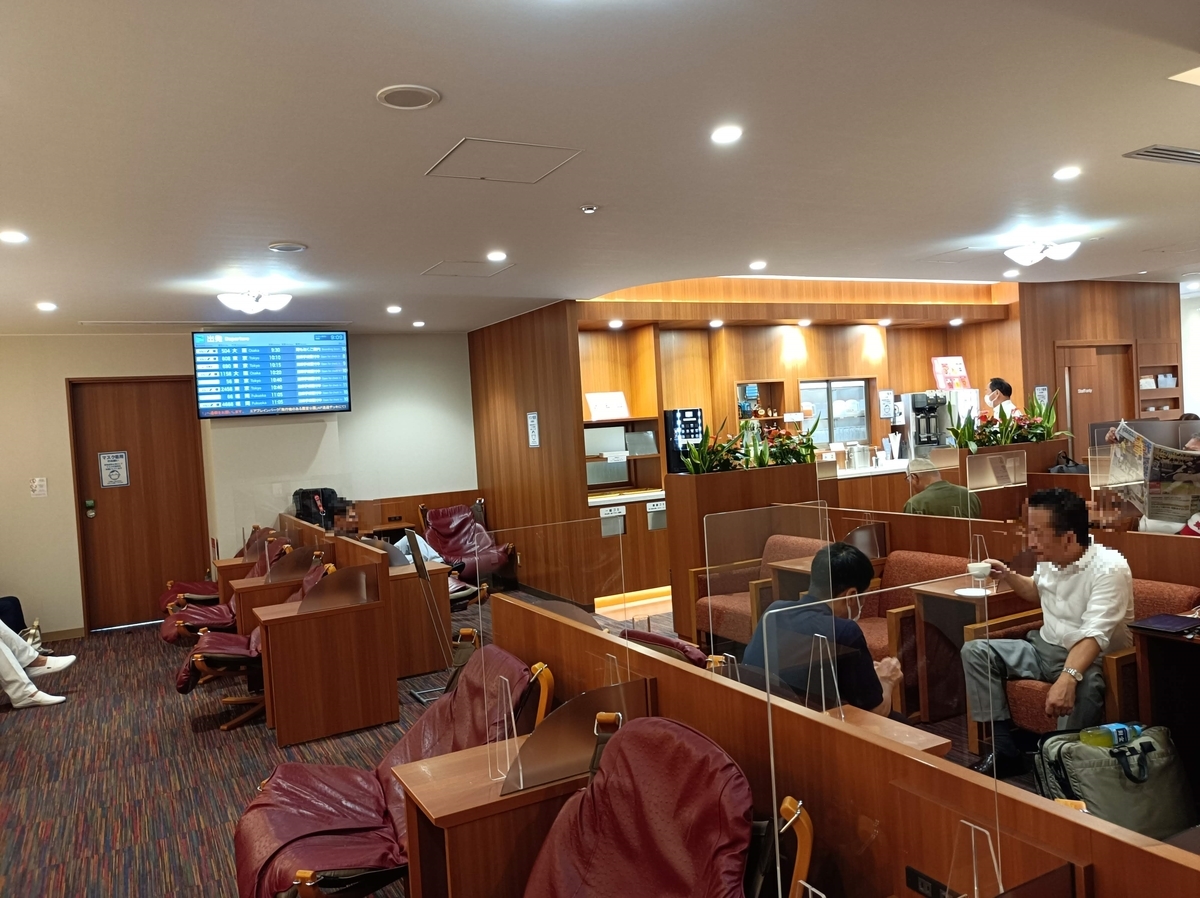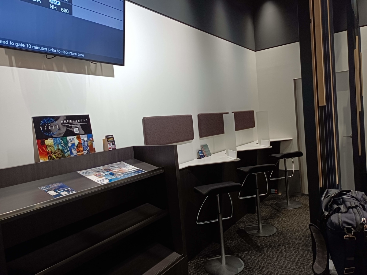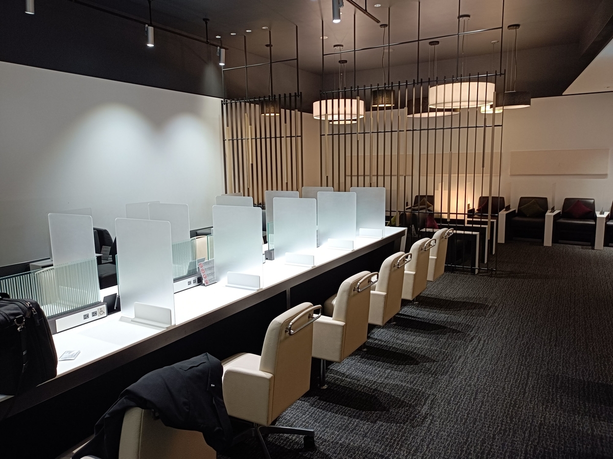 ここはANAとJALの共同ラウンジになっています。と知ったように書いていますが、じつはこれ、私がいつも楽しく拝見しているブログ「独りぼっちのお気楽マイル道 ANA SFC 思想 たまには贅沢いいんじゃない?」のハナサクcoroさまに教えてもらいました。