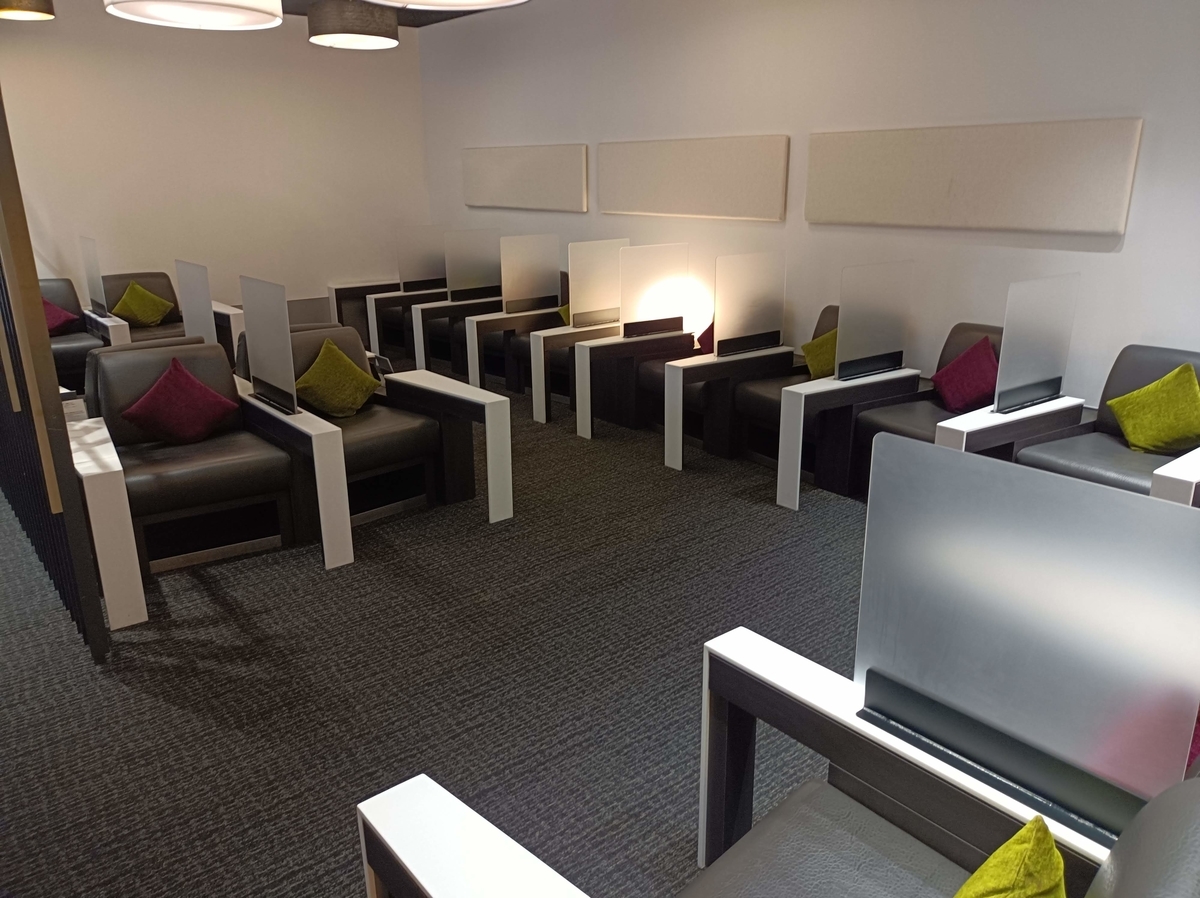 中はこんな感じ。利用率次第ですが、共同ラウンジとしてはちょうどいいサイズ感かなと思います。私が入った時は4~5人しかいませんでした。