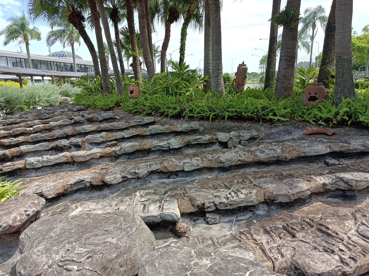 ターミナルとバスヤードの間に、「ウェルカム広場」というスペースがあります。ここには、「LIFE SEEDER」という津波・水害対応型救命艇が展示されています。また、パターの練習?ができるエリアと、宮崎の観光スポットの1つ「鬼の洗濯岩」を模したエリアがあります。