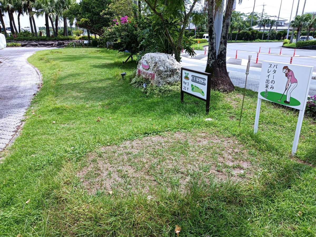 奥の方にピンフラッグが見えると思います。残念ながら手入れが良くないため、なかなか楽しむのは厳しいかったです。