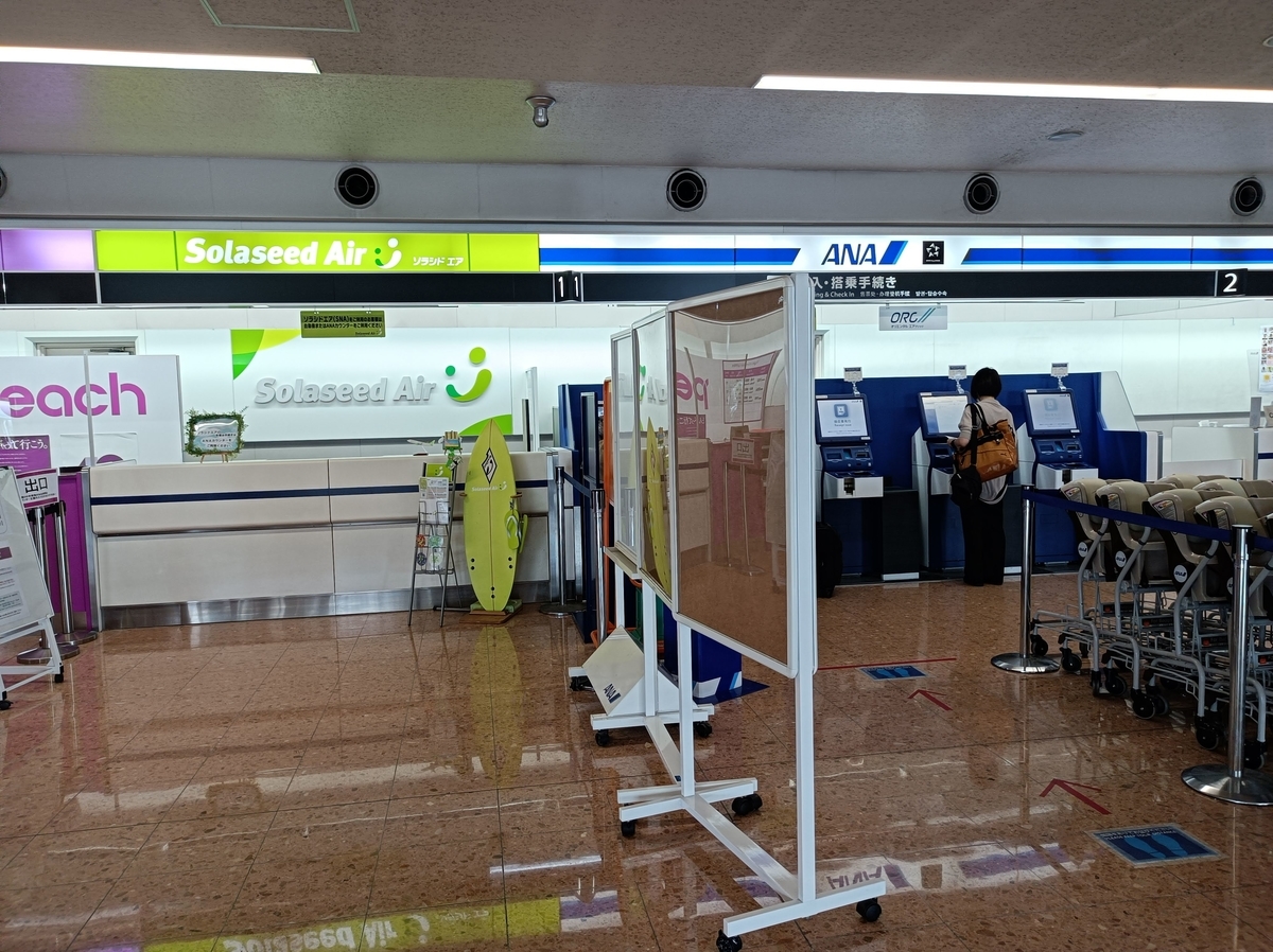 写真を撮りそこなったのですが、手前にはJETSTARとJALのカウンターがあります。ピーチとソラシドをANAとJALで挟むような感じです。