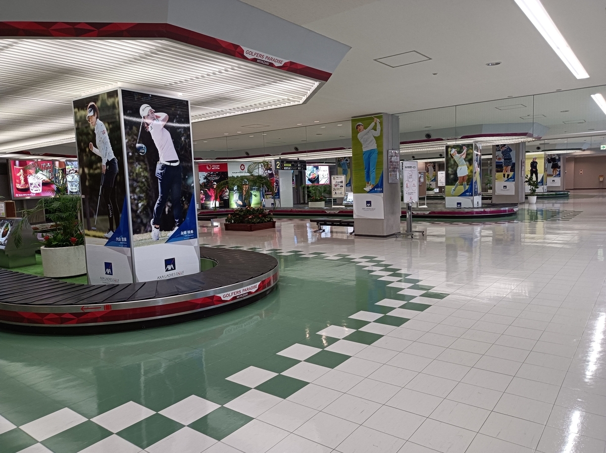 手荷物受取所です。アクサダイレクトの広告なのですが、ぱっと見のゴルフ感が半端ないです(^_^;)