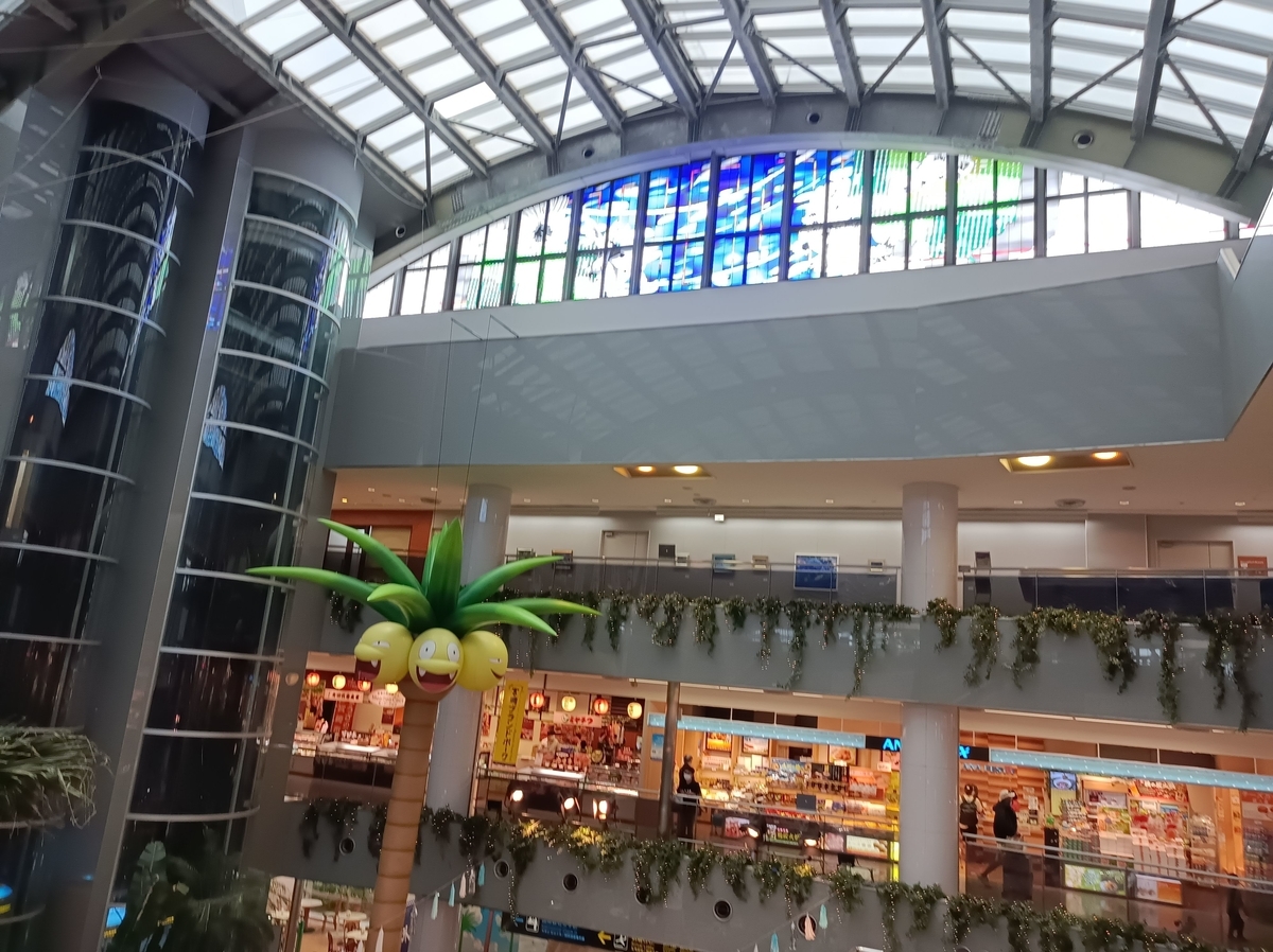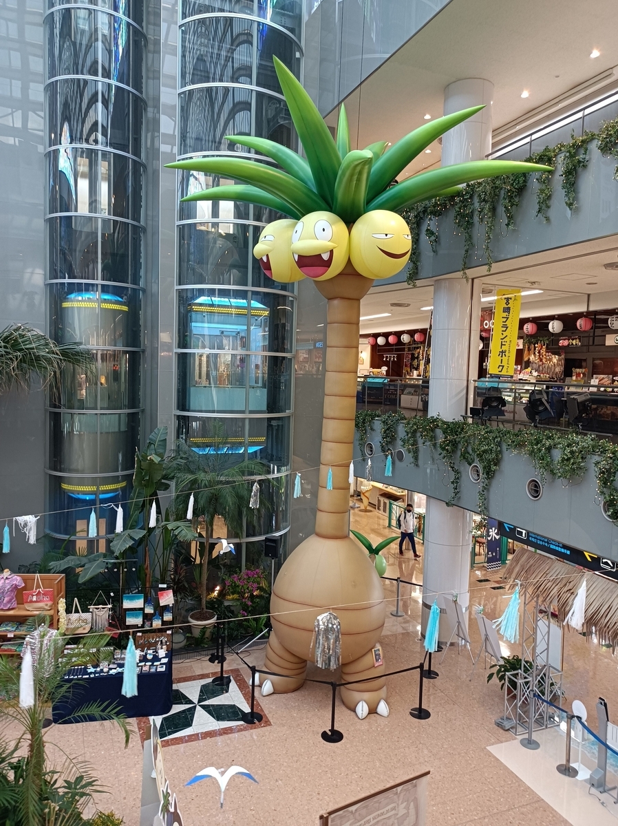 エスカレーターで1Fから2Fへ。オアシス広場の中を一望できるのですが、ナッシー(アローラのすがた)が・・・でかっ!!
