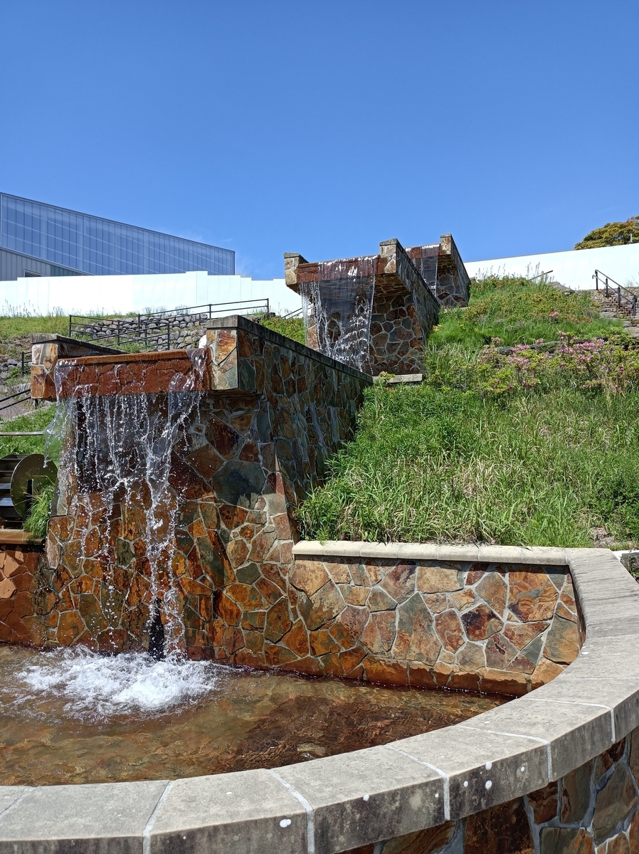 ターミナルとバスヤードの間に、「ウェルカム広場」というスペースがあります。ここには、「LIFE SEEDER」という津波・水害対応型救命艇が展示されています。また、パターの練習?ができるエリアと、宮崎の観光スポットの1つ「鬼の洗濯岩」を模したエリアがあります。