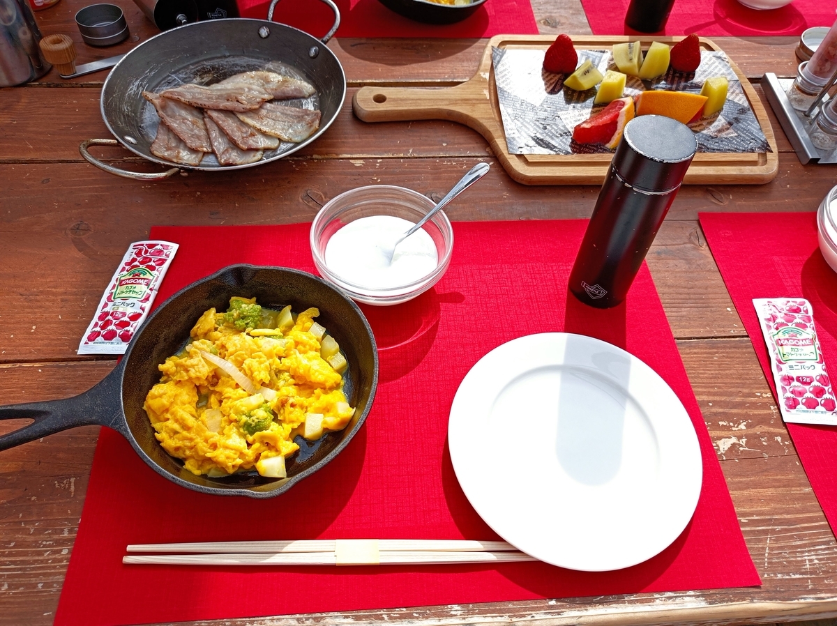 全景。和食なのでお箸ですが、朝の軽食の時は木でできたスプーンやナイフが出てきます