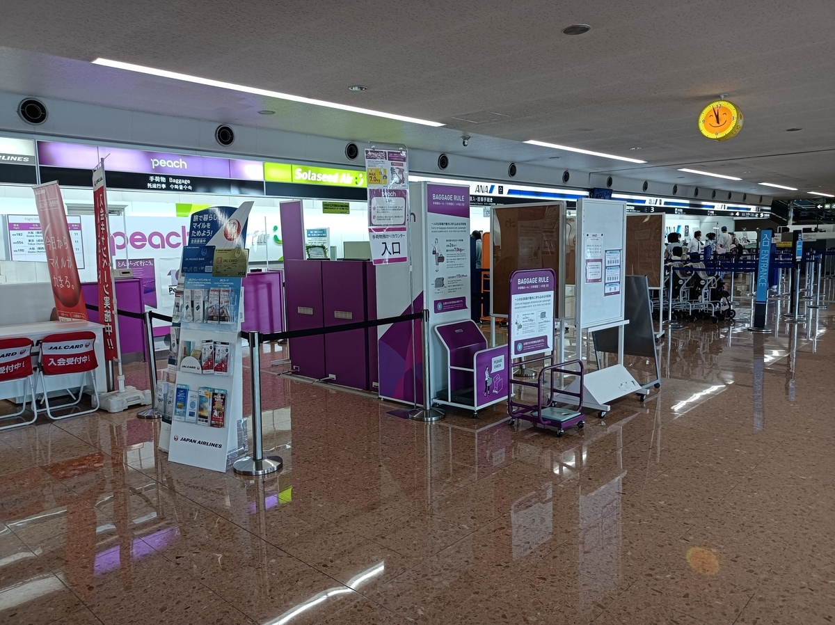 写真を撮りそこなったのですが、手前にはJETSTARとJALのカウンターがあります。ピーチとソラシドをANAとJALで挟むような感じです。